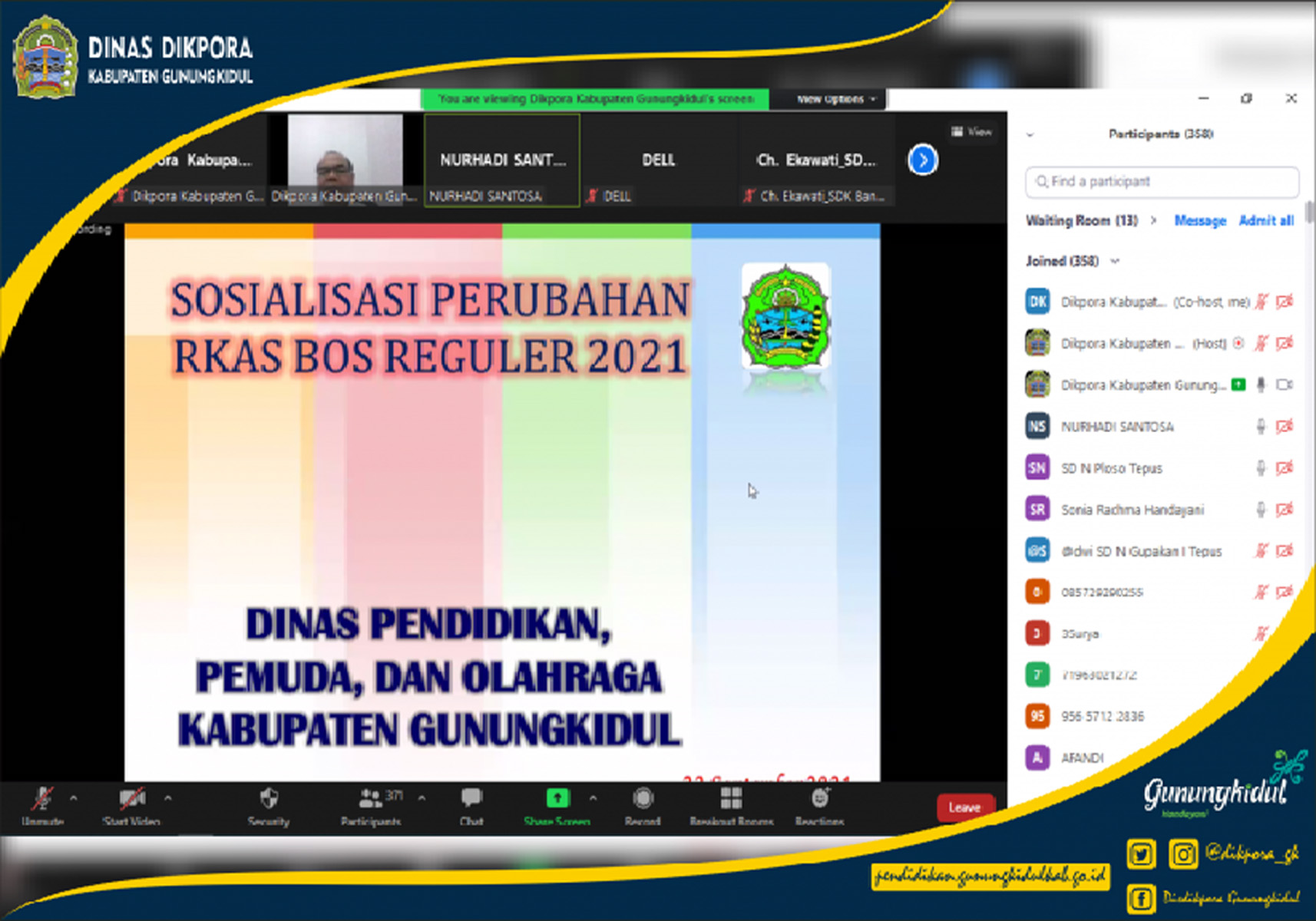 WONOSARI-  Dinas Pendididkan, Pemuda, dan Olahraga (Disdikpora) Kabupaten Gunungkidul melalui Subbagian Perencanaan menyelenggarakan kegiatan Sosialisasi Bantuan Operasional Sekolah (BOS